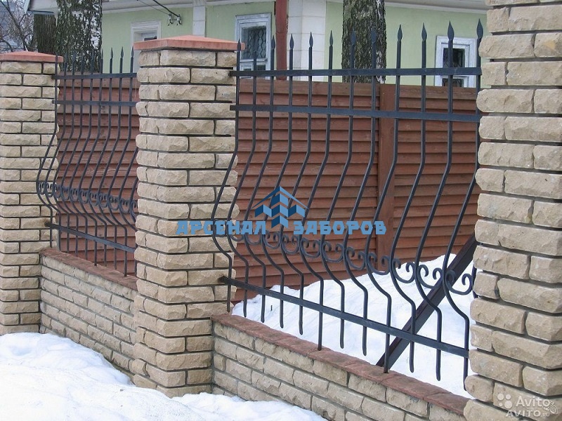 Сварные заборы с кирпичными столбами 12 соток